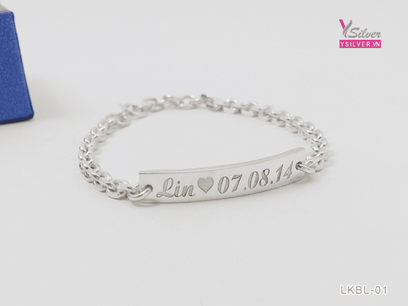 Vòng tay bạc trẻ em khắc tên - Lov story