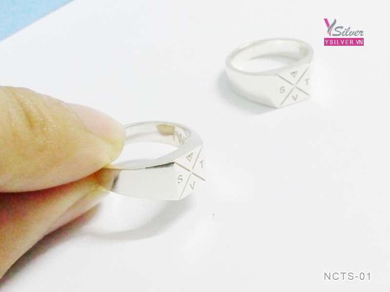 Ảnh bổ sung sản phẩm Nhẫn bạc cặp mặt vuông khắc chữ - Tiny Square 1